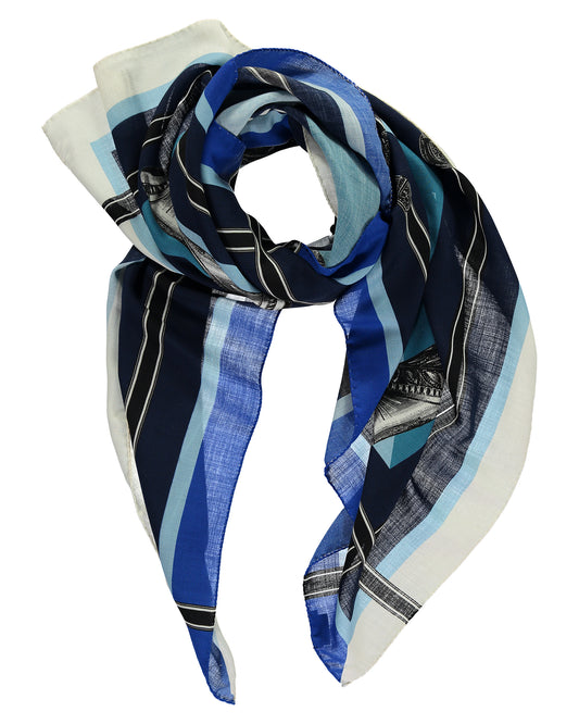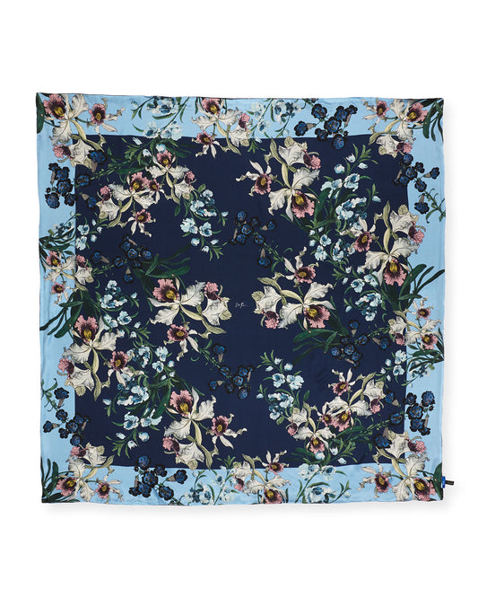 Oksana Blue Large Square Wool & Cashmere Scarf