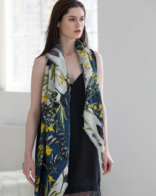 Robin Blue Large Square Wool & Cashmere Scarf