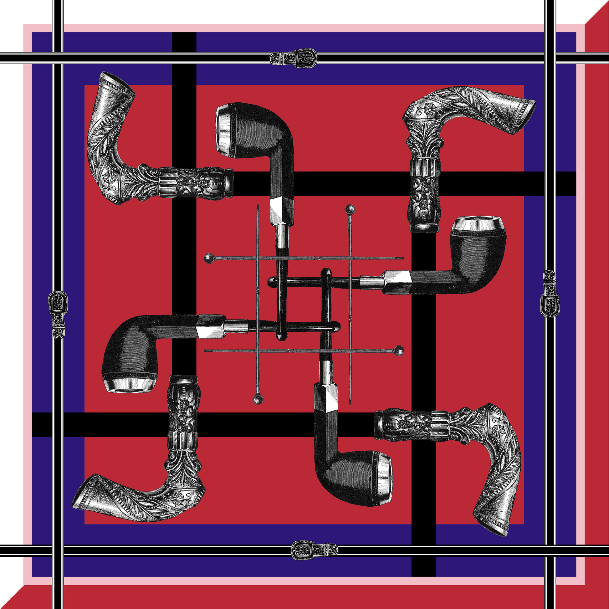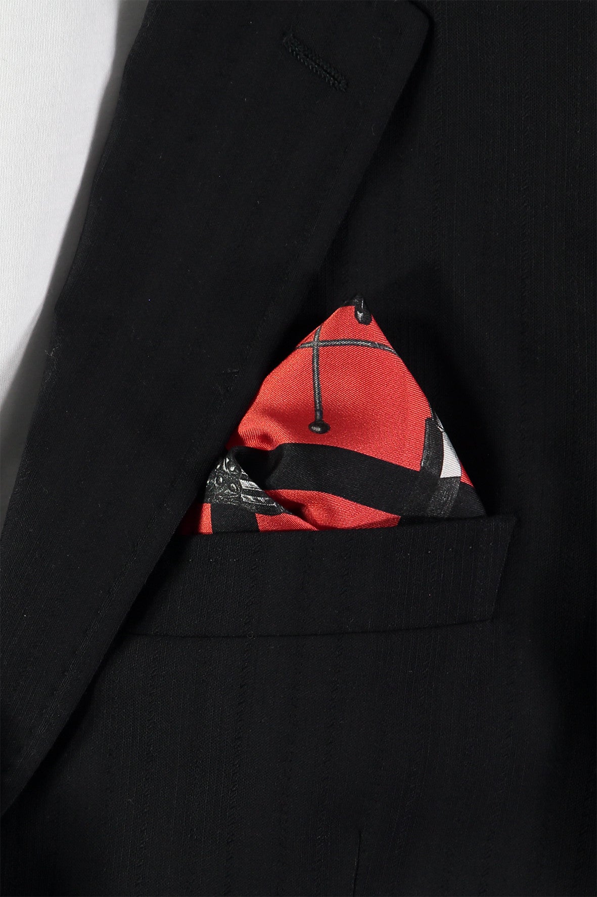 Printed and finished with glossy and lustrous silk twill in England. Doyle pocket square features vintage pipes and walking sticks, all the essentials of a London gentleman.