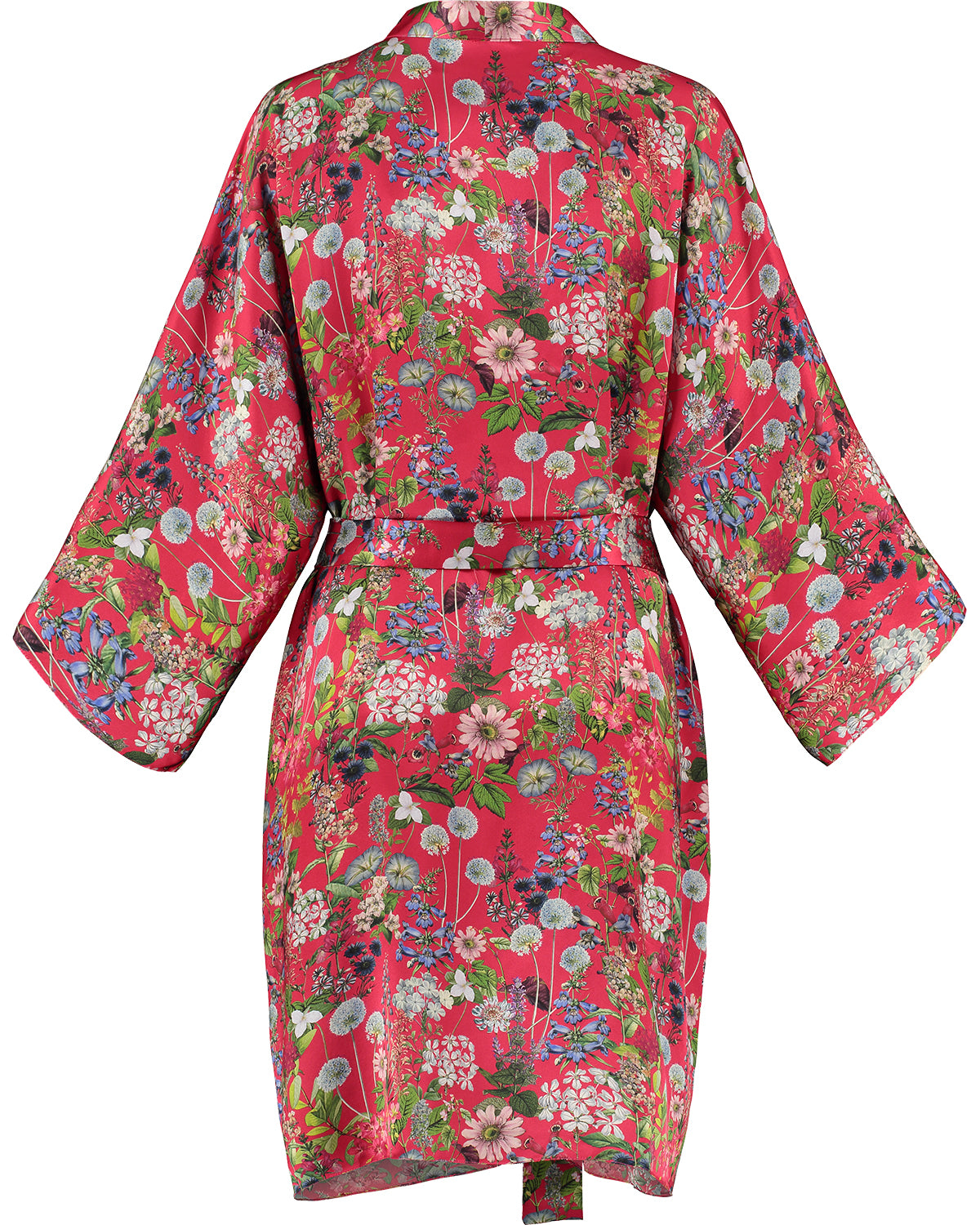 St. Piece garments are designed to be cherished forever. Printed with vintage floral motifs, this dark pink kimono robe is hand-cut and sewn from luxurious silk satin fabric. It’s decorated with opulent blooms and finished with a tie belt and pockets. Wraparound design, ties at the waist for an adjustable fit. Left unlined so it feels light and soft against the skin. Cinch the waist with the detachable sash belt or wear it open over a t-shirt and jeans. The LAUREN PINK print is also available as silk camisole, a silk short kimono.